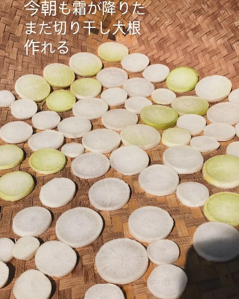 切り干し大根 2026/03/15 切り干し大根 自然農の大根は市販のものに比べるとずいぶん小さく痩せっぽち。ですがおいしさは負けない。まだまだ朝晩は霜が降りるほど寒い豊栄です。董立ちする前に輪切りにして切り干し大根に。藁に通した昔ながらの切り干し大根を軒下に吊るしたいところですが…。 #豊栄 #バーベキュー #切り干し大根 #メニューに一品 #もうすぐ春